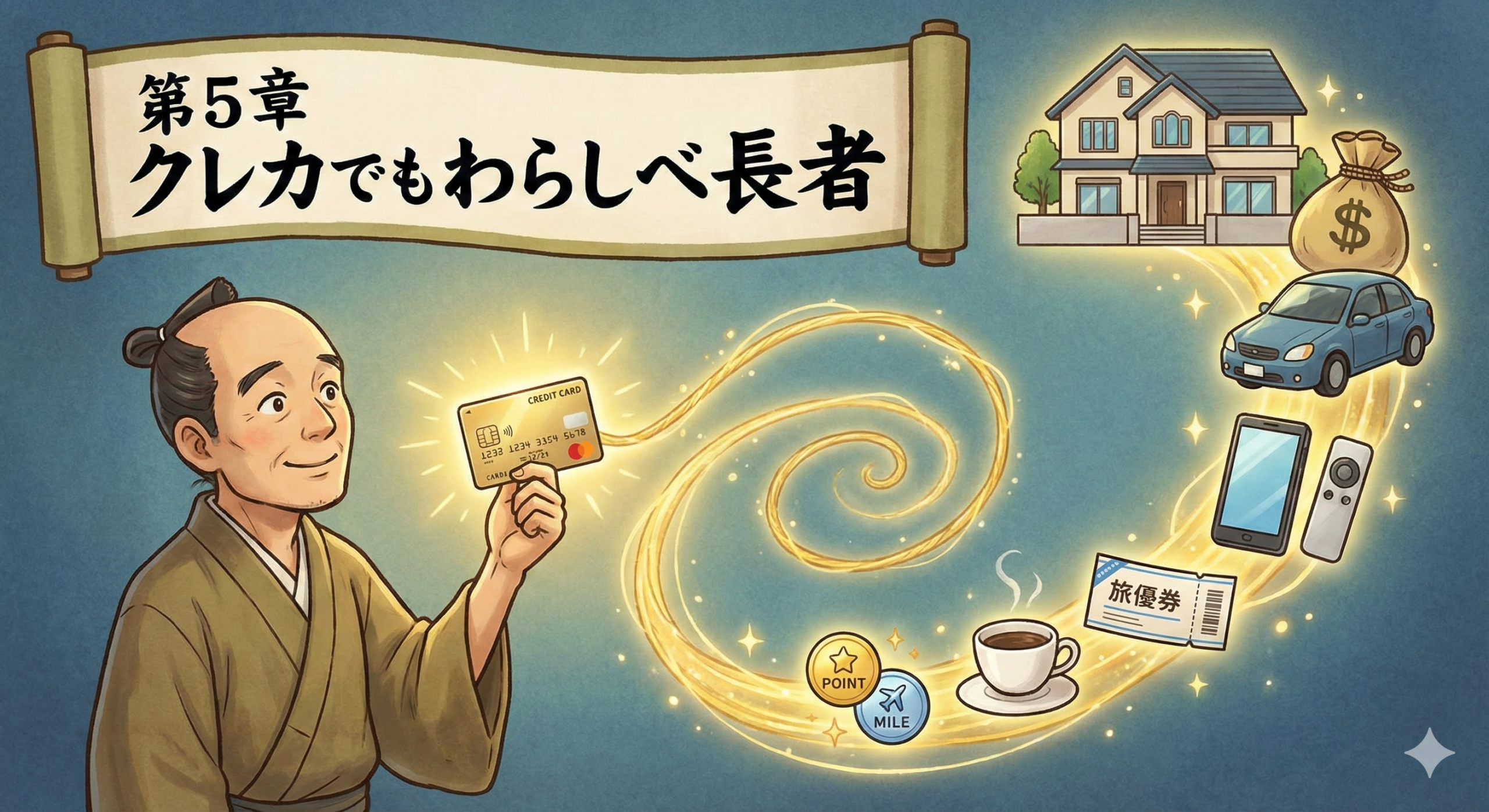 わらしべ長者とは、一本の藁(わら)を物々交換していき、最後には屋敷を手に入れる物語。 現代における「藁」こそが、クレジットカードのポイントです。 見栄のために高い年会費(コスト)を払うのではなく、「持っているだけで勝手に価値が増えていくカード」を選ぶこと。それが、資産形成の片道切符を手にする唯一の方法です。