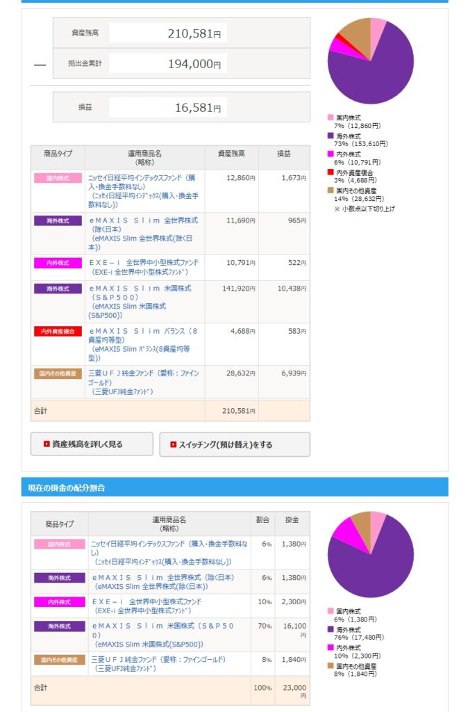 まずは、国が用意した最強の非課税制度「iDeCo」の画面だ。ここは絶対に崩れてはならない