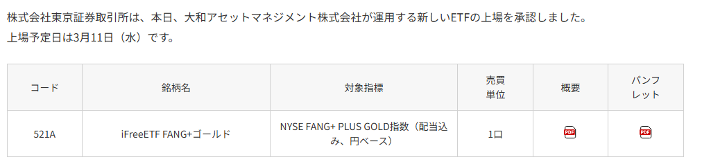 私が今ロックオンしているのが、3月11日に上場するバケモノETF「iFreeETF FANG+ゴールド(コード:521A)」だ。強烈な破壊力を持つFANG+に、安全資産のゴールドをぶつけるという狂気と理性が同居したこの商品。