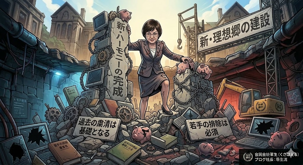 「もう答えは出ているのだ。国家のOS(社会主義的セーフティネット+資本主義)はすでに完成しているのに、現実を見ずに理想だけを語り、内部では若手を排除して身内を粛清する……。」