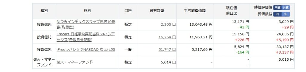 楽天証券:Niつみインデックスラップ世界10指数均等型毎月3000円積立