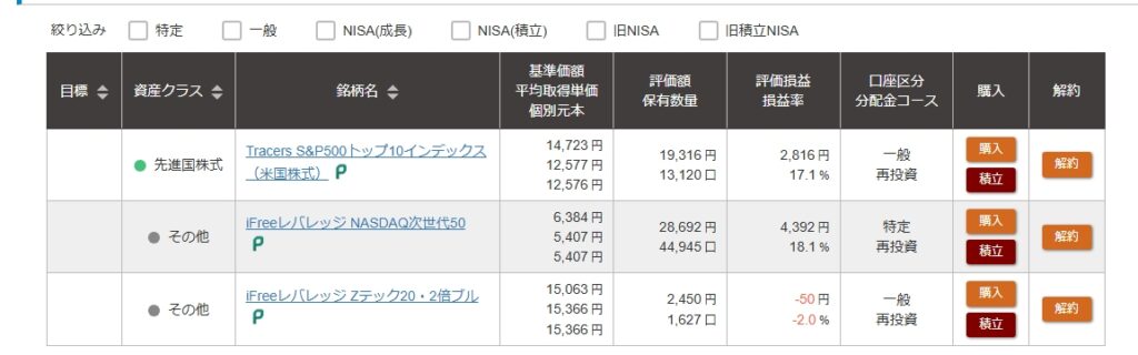 - 資産ブースト枠: 主にレバレッジの投資信託を毎日積立。