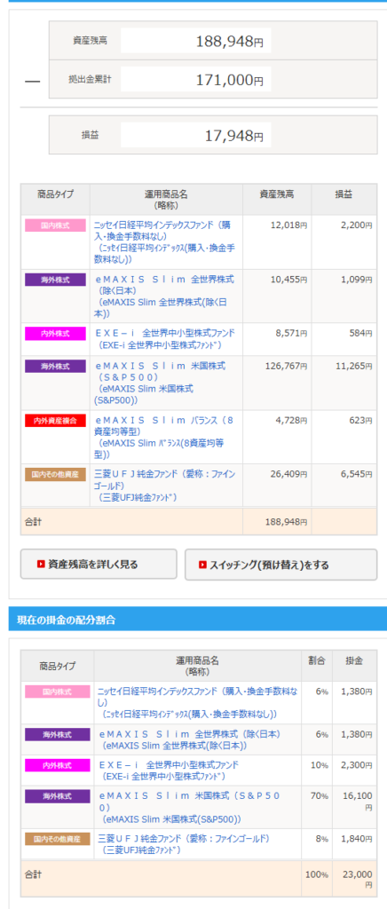 (特定枠の積立はこの6種類を毎日積立) - 資産コア枠: 投資信託をNISAで毎日積立